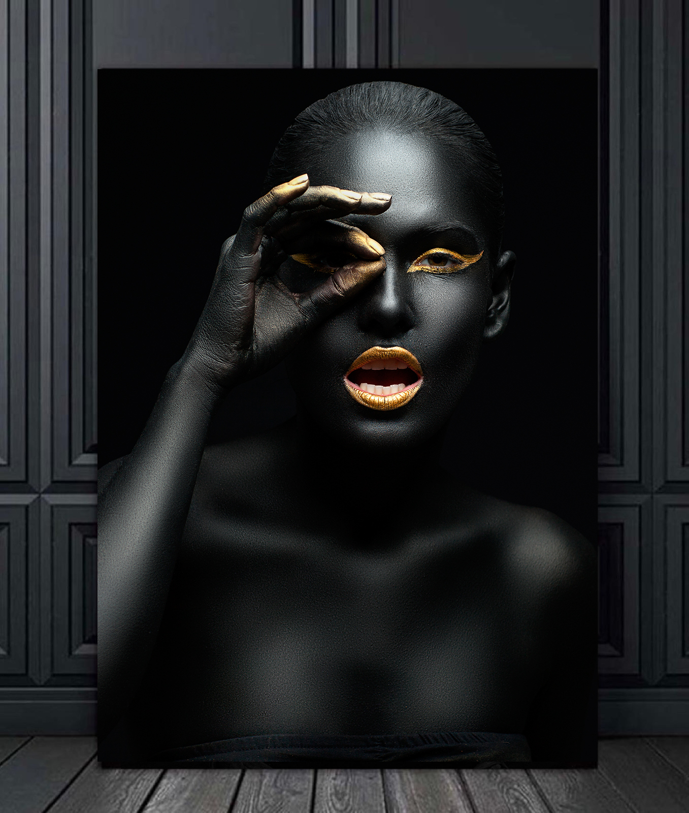 Модульная картина девушка с золотыми пальцами