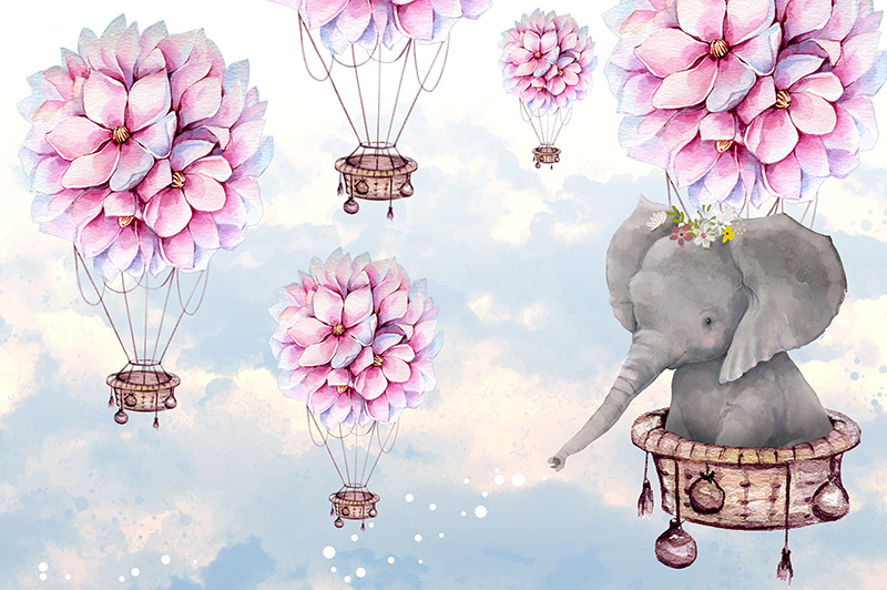 Детские фотообои слона на воздушном шаре украсят комнату ребенка и добавят изюминку в современный интерьер. Делаем любые размеры фотообоев, а также изготавливаем продукцию по индивидуальным заказам.